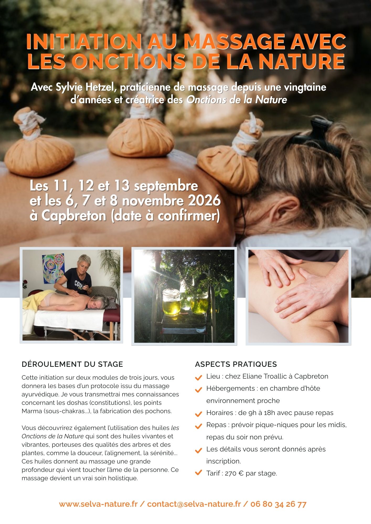 avec Sylvie Hetzel • Renseignements et inscriptions : 06 80 34 26 77 / contact@selva-nature.fr • Détails